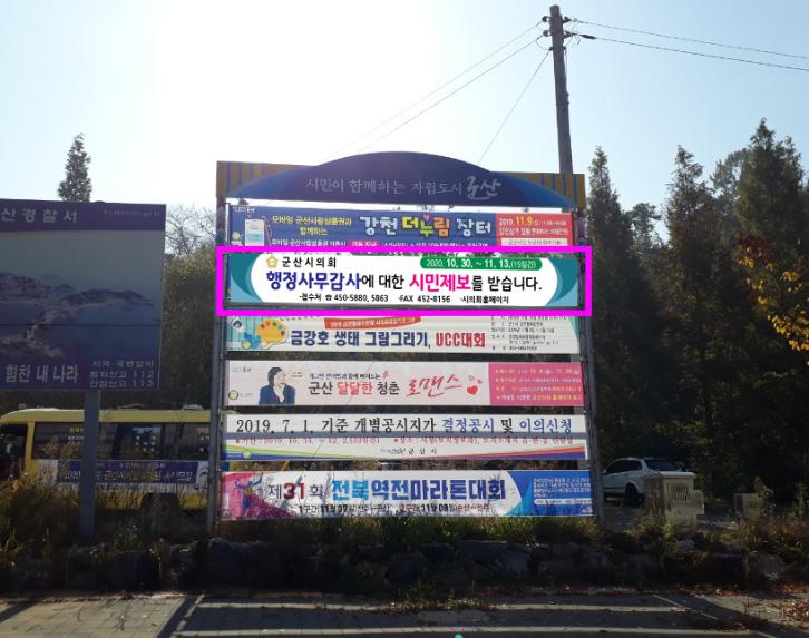 행정사무감사에 대한 시민제보를 받습니다! - 군산시의회, 30일부터 내달 13일까지 온오프라인 접수 - 군산시의회(의장 정길수)가 2020년 행정사무감사를 앞두고 보다 알차고 내실 있는 감사를 실시하기 위해 시민제보를 받는다. 30일부터 11월 13일까지 각 읍면동에“행정사무감사에 대한 시민제보를 받습니다”란 현수막을 게첨하고 홍보에 들어갔다. 시의회는 17일부터 9일간 열리는 행정사무감사를 앞두고 군산시 행정의 불합리한 사항, 시민생활 불편사항 및 기타 제도 개선사항 등 시정 전반의 대한 사항에 대해 접수를 받는다. 다만, 지방자치단체 및 그 장이 위임받아 처리하는 국가사무와 시·도의 사무에 대하여 국회가 직접 감사하기로 한 사무, 개인의 사생활 침해 또는 수사 중인 사건, 의장 및 의원을 모독하는 사항, 다른 행정기관에서 감사했거나 감사 중인 사항, 익명의 제보 등은 제보대상에서 제외된다. 제보방법은 군산시의회 홈페이지‘군산시의회에 바란다’에 의견을 남기거나 전화(450-5880, 5863)·팩스(452-8156) 및 방문 접수(민원상담관 10층) 등 다양한 방법을 통해 가능하며 내달 13일까지 상시 운영한다. 행정사무감사 시민제보창구는 시민들이 참여하고 공감할 수 있는 열린의회를 실현하기 위해 시행하고 있으며, 접수한 내용은 행정사무감사에 활용하고 그 결과는 민원인에게 통보할 예정이다. 정길수 의장은“의정활동의 꽃이라 불리는 행정사무감사는 행정업무전반에 대해 실태를 파악하고 개선이 필요한 사항은 사업이 올바르게 추진할 수 있도록 방향 및 대안을 제시해 행정의 타당성과 효율성을 높이는데 목적이 있다”며 “시민이 공감하고 소통할 수 있는 기회인만큼 시민 여러분의 많은 관심과 참여를 부탁드린다.”고 말했다. ![]() |