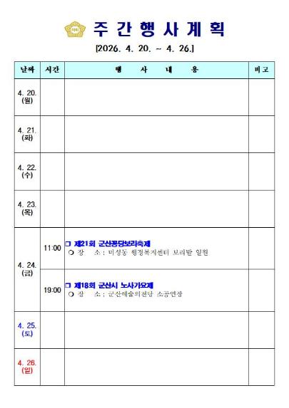 | 군산시의회 주요 행사(4.20.~ 4.26.) | |||||