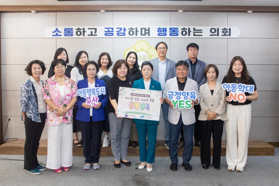아동학대 예방을 위한 릴레이 캠페인은 보건복지부와 아동권리보장원에서 아동학대에 대한 경각심 고취와 아동학대 예방을 위한 긍정양육 인식 확산을 위해 기획한 것으로 이날 서동수 부의장을 비롯하여 김영란 행정복지위원회 부위원장, 양세용 의원, 우종삼 의원이 함께 뜻깊은 일에 동참했습니다. ![]() 송미숙 행정복지위원장은 “아동을 소중한 인격체로 존중하는 긍정양육이 확산되기를 바라는 마음에 참여하게 되었다”며 “아이들이 행복하고 건강하게 살아갈 수 있도록 최선을 다하겠다”고 말했습니다.