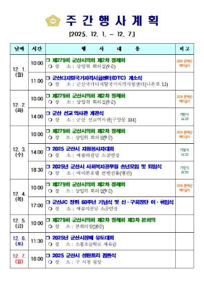 | 의회 주요업무 및 행사 (12.1~12.7) | |||||