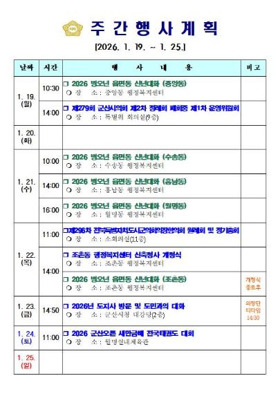 의회 주요업무 및 행사(1.19~1.25)![]() |