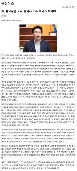 | 다음글 | 설경민 군산시의원 고부가가치 산업 크루즈 관광 활성화 계획에 제외되어 있는 군산 |